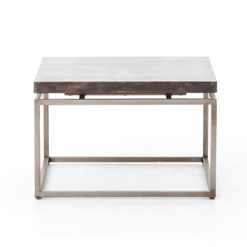 Acid-washed iron floats over a spare, geometric base that beautifully captures negative space. Each top is uniquely mottled, then sealed to preserve a moment in time. Perfect in pairs.