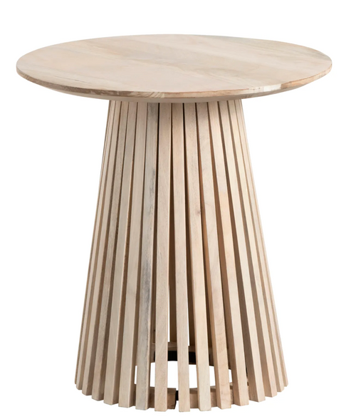 This end table is a harmonious blend of natural beauty and transitional design. Crafted with meticulous attention to detail, this table features a warm natural wood finish that seamlessly complements various decor styles. The slated wood base adds depth and character, creating inviting charm in any room. Built to last from high-quality mango wood, it promises stability and durability.