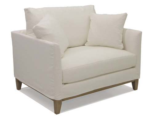 don't settle for less than premium USA made upholstery from North Carolina. Each piece is made to order and has a kiln dried hardwood frame, tempered steel grid suspension system. premium construction. eco-friendly/non toxic construction. covered in a washable cotton blend fabric with a light wash leg.